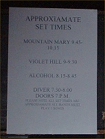 Sound Check Baby One More Time/Buffy Theme Main Set Baby One More Time/Buffy Theme Dreams Don't Walk Away Claire Live It Loud Pop Song Gone Away Alternate Reality Useless 20th Century Boy Nancy Boy Drink Me Drew Paranoid Smells Like Teen Spirit Encore Baby One More Time/Buffy Theme |