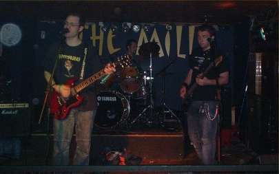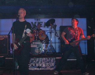 This was a welcoming return to Alcohol's home ground, the Town Mill. After a short break after Ste's wife giving birth to there second child Oliver Luke Cripwell, the band were back with a vengeance, even though it was Friday the 13th. The band had been asked to open the night, followed by the Strafes, Starscreen and Geoff Carling. Cory started the gig with an extended version on the drums to Ought to Know and then the boy's were ready. The gig as per norm, started at a high pace and carried on through out the set. After a small speech from Tony, the crowd were introduced to Alcohol's brand new wannabe hero's theme tune, Super Hero. The band seemed to pull this off especially as they had not played it in a month. The gig carried on again with pace, even though Tony had a few technical problems. The gig was a success and even with a very receptive small crowd, Alcohol believe this to be one of there best gigs to date. Thanks to all who came and thanks to Chall for providing a good sound on stage.