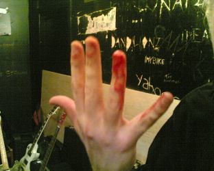 The sound guy asked Alcohol if they'd go on first, which the boys were happy about as they love going on first and gave them more time for the post show partying! Alcohol opened up with new song "Oughta Know" which they'd only been playing for a couple of weeks, after that the band were on more familiar ground with songs like "Hate & Hate", "Is It Real?" and "Drowning". Tony came off stage with his hand dripping with blood from playing so hard!