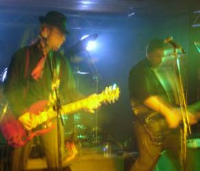 Alcohol kicked off the third day of the Mills Easterfest at 5.45 with Breakdown. Tony tonight was sporting a massive hangover which was sponsored by local metal legands Acid Pope. After a dodgy start on guitar, Tony woke up for Hate & Hate. The band followed that with their cover of the Girls Aloud song Love Machine - which Tony dedicated to Acid Pope. Afterwards Acid Pope asked Alcohol never to play it again - sorry but it'll be on the set list for April 10th!!!