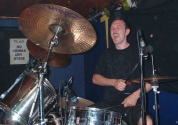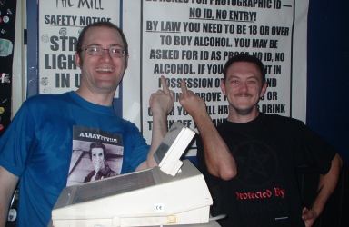 Ste organised tonights gig for Children In Need, and had various events going off all night. After shaving his head, Ste joined Alcohol on stage sporting a rather funky Billy Corgan look that scared the rest of the band.